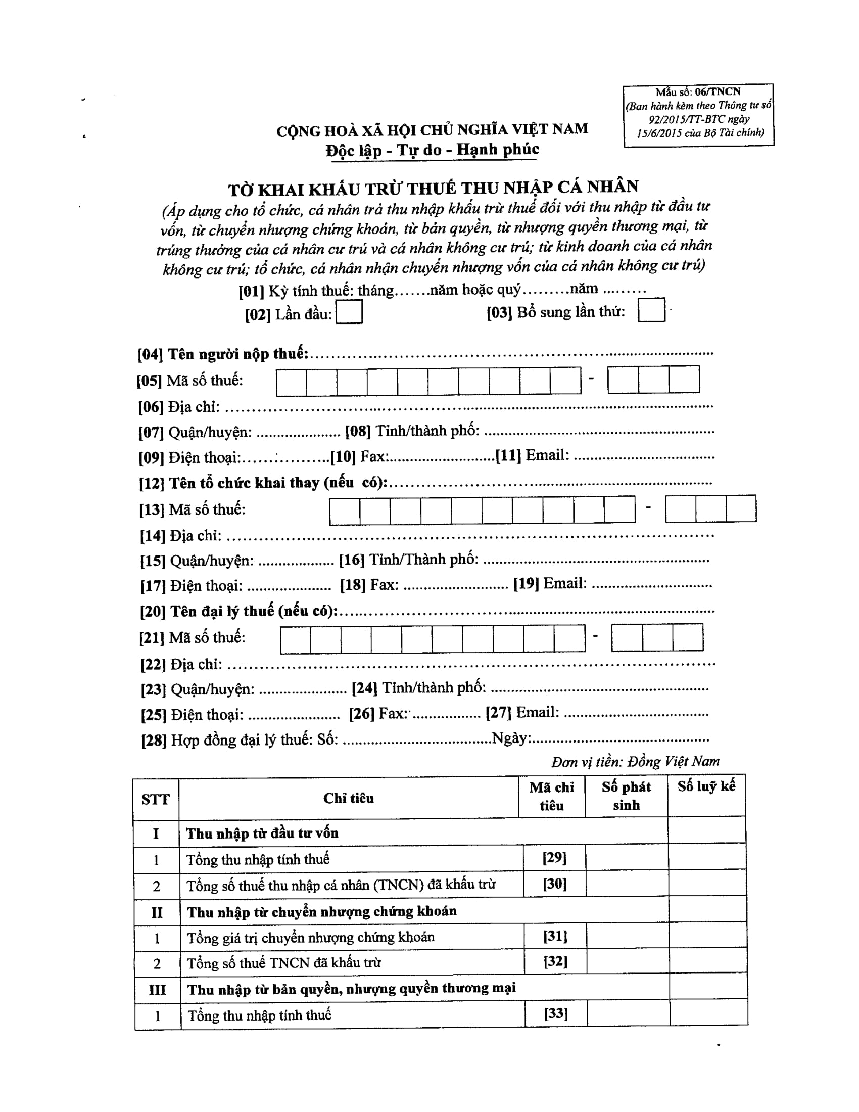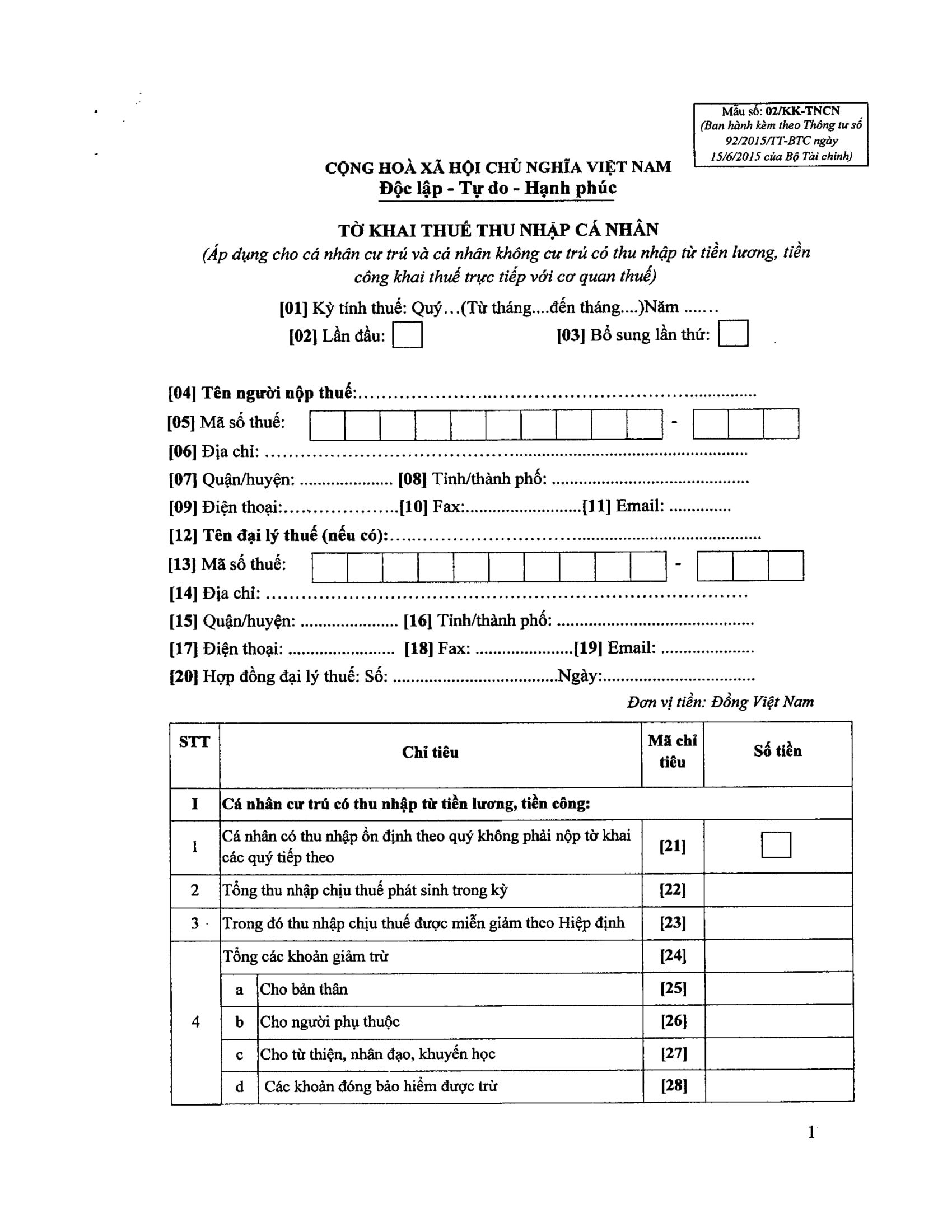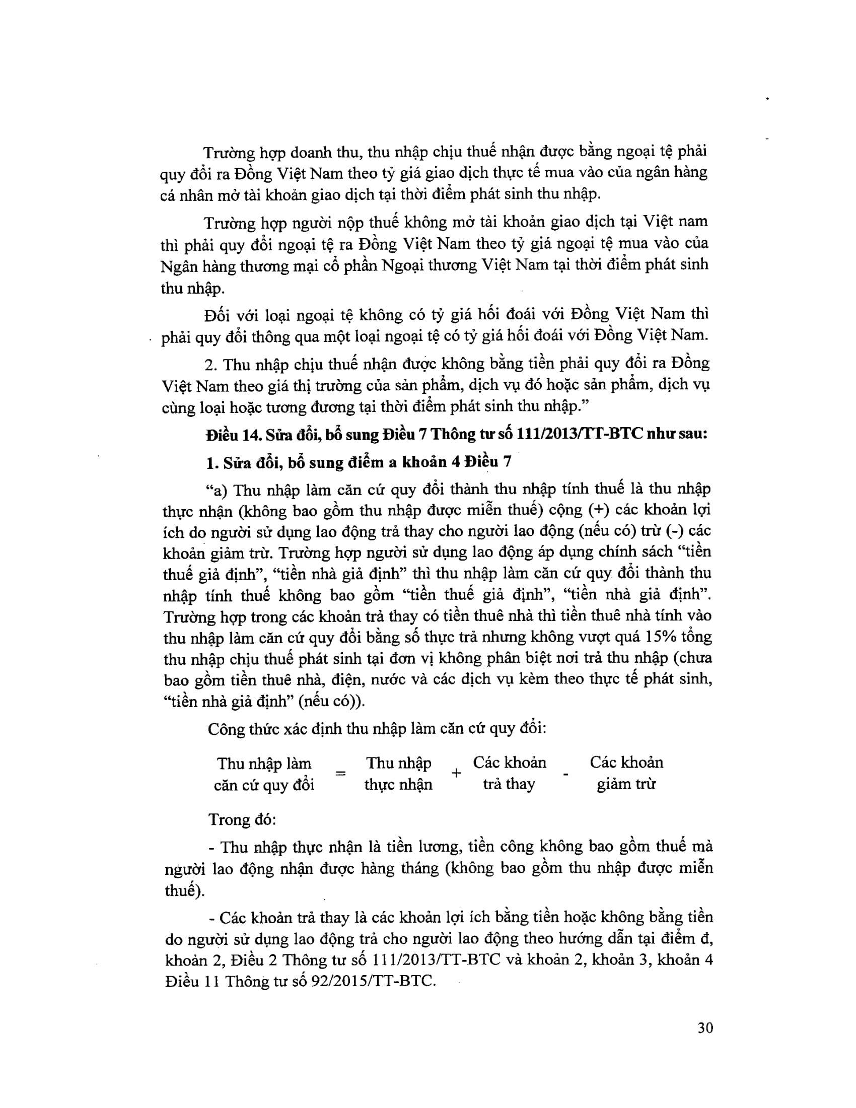 THÔNG TƯ SỐ 92/2015 TT-BTC Ngày 15/06/2015 có hiệu lực từ ngày 30/7/2015 Hướng dẫn thuế thu nhập cá nhân, các quy định về thuế